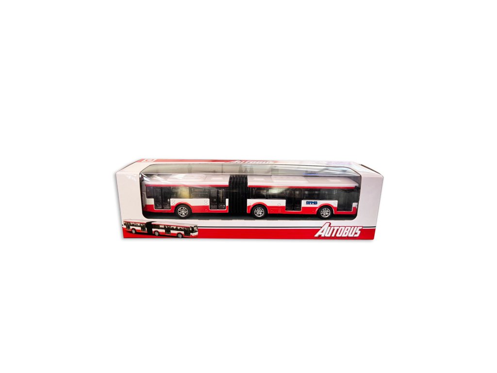 Moderní kovový autobus v červeném provedení je unikátní hračkou, která nadchne všechny malé i velké fanoušky dopravních prostředků. Autobus je dlouhý cca 18 cm, jezdí na zpětný chod.