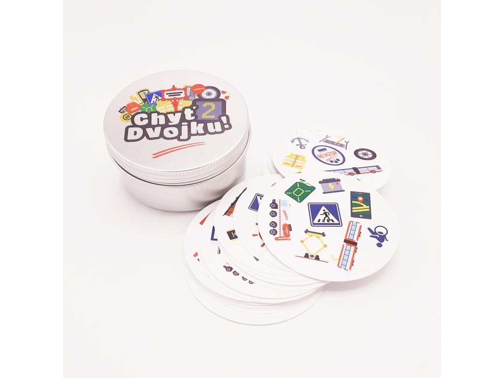 Rodinná hra zaměřená na rychlost, postřeh a reflexy. Balíček obsahuje 57 karet s 8 obrázky. Můžete hrát 6 různých her.